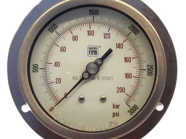 گیج فشار برند نووا فیما (NUOVA FIMA) 0-200 بار صفحه 10 سانتی متر (BACK CONNECTION)